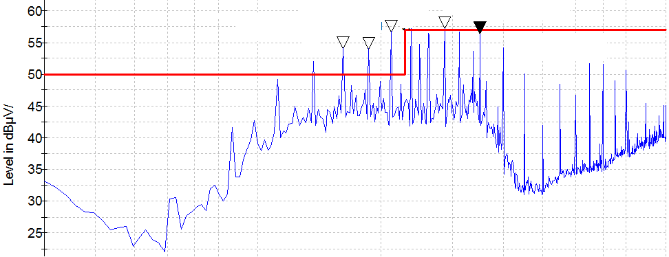 圖1 早期串口屏輻射發(fā)射騷擾度波形
