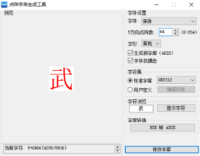 勾選,將以ADZK格式保存字庫數(shù)據(jù),生成的字庫文件的后綴為ADZK。目前僅SDWb系列支持該格式字庫。否則生成DZK格式字庫。