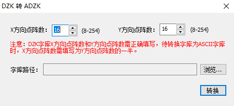 對于已有DZK格式的字庫,想要在不改變字形的情況下,減小字庫文件大小的用戶可以嘗試該功能將DZK格式字庫轉(zhuǎn)換成ADZK格式的字庫,詳見下文(五)。 |