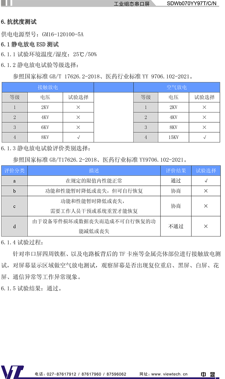 ● 靜電抗擾度行業(yè)領先;接觸放電高達±8KV、空氣放電±15KV,依據(jù)GB/T 17626.2-2018中的a類評價標準;